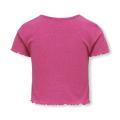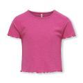 Maglia Only da bambina a tinta unita in colorazione fucsia. Modello girocollo, maniche corte e fondo con orlo dritto. Tessuto in misto Poliestere.
