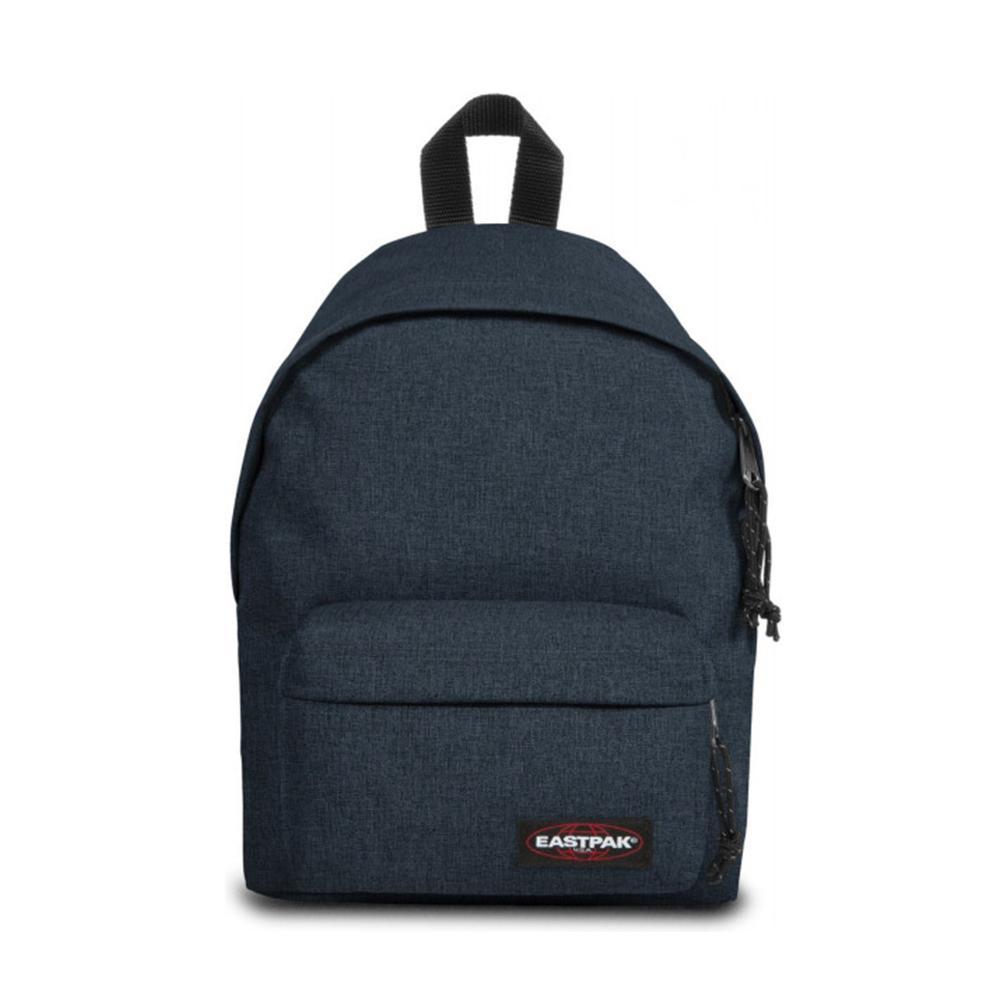 Zaino Eastpak da bambino a tinta unita in colorazione indaco. Modello con bretelle regolabili, manico singolo, chiusura con cerniera anteriore e marsupio frontale con piccolo logo del brand in contrasto di colore. Capienza 10L.