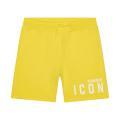 Bermuda Dsquared da bambino a tinta unita in colorazione giallo con classica scritta del brand stampata sulla gamba in contrasto di colore. Modello con molla elastica in vita con lacci, comode tasche laterali e tessuto in cotone.