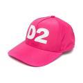 Berretto Dsquared da bambina a tinta unita in colorazione fucsia con classico logo stampato del brand sul davanti in contrasto di colore. Modello visiera a becco, chiusura sul retro con linguetta e tessuto in cotone.