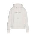 Felpa Calvin Klein da donna a tinta unita in colorazione panna con classico logo del brand cucito sul davanti in contrasto di colore. Modello con ampio cappuccio, maniche lunghe con polsini, fondo con orlo dritto e molla elastica in vita.