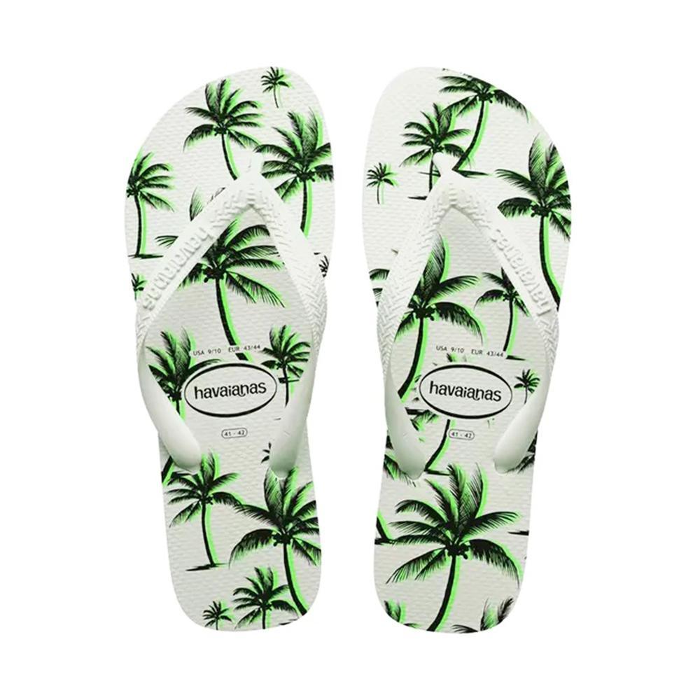 Infradito Havaianas da uomo in colorazione bianco con disegni stampati e logo in contrasto di colore. Modello con cinturino in PVC e suola in gomma.