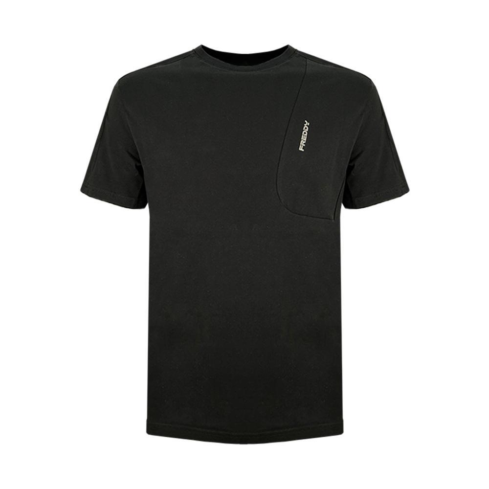 T-shirt Freddy da uomo a tinta unita in colorazione nero con dettaglio sul davanti e classico logo del brand stampato sul davanti in contrasto di colore. Modello girocollo, maniche corte, fondo con orlo dritto e tessuto in cotone.