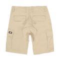 Bermuda Dickies cargo da uomo a tinta unita in colorazione beige. Modello in tessuto, con chiusura con bottone e zip, vita e vestibilità regolare, due tasche laterali, due laterali cargo, due posteriori con patta e chiusura con poussoir. Rinforzo sul cavallo, logo Dickies su etichetta cucita sulla tasca cargo sinistra. Tessuto ripstop 100% cotone.