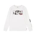 T-shirt Levi's da bambino a tinta unita in colorazione bianco con stampa del brand sul davanti e scritta sulla manica in contrasto di colore. Modello girocollo, maniche lunghe e fondo con orlo dritto. Tessuto in misto cotone.