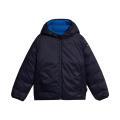 Giubbotto Napapijri da bambino reversibile a tinta unita in colorazione bluette con interno blu con classico logo del brand stampato sul davanti in contrasto di colore. Modello con ampio cappuccio, maniche lunghe con polsini, chiusura sul davanti con cerniera, comode tasche laterali, fondo con orlo dritto e molla elastica in vita. Tessuto in poliammide.