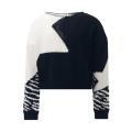 Maglia Relish da bambina in colorazione nero e bianco con disegni su tutto il capo. Modello con ampio scollo rotondo, maniche lunghe con polsini, fondo con orlo dritto e molla elastica in vita.