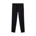 Pantafelpa Bikkembergs da bambino a tinta unita in colorazione nero con logo del brand sul retro in contrasto di colore. Modello con molla elastica in vita con lacci, comode tasche laterali e fondo con polsini alle caviglie. Tessuto in cotone.