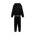 Tuta Australian da bambino a tinta unita in colorazione nero. Modello con felpa con cappuccio, classico logo del brand stampato sul petto in contrasto di colore, maniche lunghe con polsini, chiusura sul davanti con cerniera e fondo con orlo dritto. Pantafelpa con molla elastica in vita, comode tasche laterali e fondo con polsini alle caviglie.