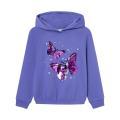 Felpa Name.it da bambina a tinta unita in colorazione viola con scritte e stampe sul davanti realizzate con paillette in contrasto di colore. Modello con ampio cappuccio, maniche lunghe con polsini, fondo con orlo dritto e molla elastica in vita.