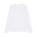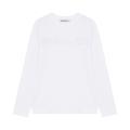 T-shirt Patrizia Pepe da bambina a tinta unita in colorazione bianco con classica scritta del brand sul davanti in contrasto di colore. Modello girocollo, maniche lunghe con polsini e fondo con orlo dritto. Tessuto in cotone.