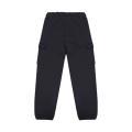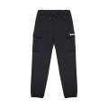 Pantafelpa Disclaimer da bambino a tinta unita in colorazione nero con classica scritta del brand stampata sulla gamba in contrasto di colore. Modello cargo con due tasche grandi sulle gambe, molla elastica in vita con lacci e fondo con polsini alle caviglie.