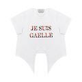 T-shirt Gaelle da bambina a tinta unita in colorazione bianco con scritta sul davanti in contrasto di colore. Modello girocollo, maniche corte e dettaglio sul fondo con fasce.