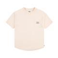 T-shirt Levi's da bambina a tinta unita in colorazione pesca con toppa del brand posta sul taschino sul petto in contrasto di colore. Modello girocollo, maniche corte e fondo ovale. Tessuto in misto cotone.