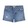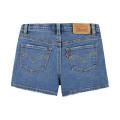Shorts Levi's da bambina con classico lavaggio denim con dettagli di segni di usura sulla gamba. Modello cinque tasche, chiusura sul davanti con bottone, passa cintura in vita e toppa del brand sul retro. Tessuto in misto cotone.