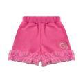 Shorts Gaudi da bambina a tinta unita in colorazione fucsia con classico logo del brand realizzato con brillantini posto sulla gamba in contrasto di colore. Modello con molla elastica in vita, comode tasche laterali e fondo con tulle.