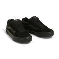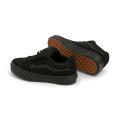 Scarpe Vans da bambino a tinta unita in colorazione nero con classico logo del brand posto lateralmente in contrasto di colore. Modello con chiusura con lacci, punta rotonda e suola in gomma. Tomaia in camoscio e logo in pelle.