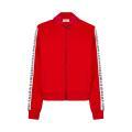 Felpa Bikkembergs da uomo a tinta unita in colorazione rosso con classiche bande del brand poste sulle maniche in contrasto di colore. Modello con colletto college, chiusura sul davanti con cerniera, maniche lunghe con polsini, fondo con orlo dritto e molla elastica in vita.