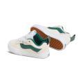 Scarpe Vans da neonato a tinta unita in colorazione panna e verde con logo del brand posto lateralmente in contrasto di colore. Modello con chiusura con lacci, punta rotonda e suola in gomma. Tomaia in camoscio e logo in pelle.