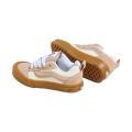 Scarpe Vans da bambino a tinta unita in colorazione panna e sabbia con classico logo del brand posto lateralmente in contrasto di colore. Modello con chiusura con lacci, punta rotonda e suola in gomma. Tomaia in camoscio e logo in pelle.
