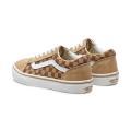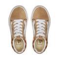 Scarpe Vans da bambino in colorazione sabbia e marrone con pattern a quadri e classico logo del brand posto lateralmente in contrasto di colore. Modello con chiusura con lacci, punta rotonda e suola in gomma. Tomaia in tessuto e logo in pelle.
