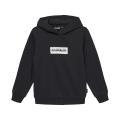 Felpa Napapijri da bambino a tinta unita in colorazione nero con stampa del brand sul davanti in contrasto di colore. Modello con ampio cappuccio, maniche lunghe con polsini, fondo con orlo dritto e molla elastica in vita. Tessuto in misto cotone.
