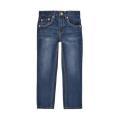 Jeans Levi's da bambino a tinta unita con classico lavaggio denim con classica toppa del brand posta sul retro in contrasto di colore. Modello cinque tasche, chiusura sul davanti con bottone metallico, passa cintura in vita e vestibilità regolare. Tessuto in misto cotone.