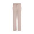 Pantafelpa Guess da donna a tinta unita in colorazione rosa antico con classico logo del brand sul petto e bande laterali con scritte all'interno in tono su tono. Modello con molla elastica in vita con lacci, comode tasche laterali e fondo con gamba ampia. Tessuto in misto viscosa.