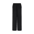 Pantalone Guess da donna a tinta unita in colorazione nero con classico logo del brand posta sulla gamba in contrasto di colore. Modello con molla elastica in vita e fondo con gamba larga. Tessuto in misto poliestere.
