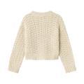 Maglia Name.it da bambina a tinta unita in colorazione sabbia con trama a fori. Modello girocollo, maniche lunghe con polsini, fondo con orlo dritto e molla elastica. Tessuto in Poliestere.