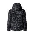 Giubbotto The North Face da bambina a tinta unita in colorazione nero e fantasia con classico logo del brand sul petto e sul retro in contrasto di colore. Modello con ampio cappuccio, chiusura sul davanti con cerniera, comode tasche laterali, maniche lunghe e fondo con orlo dritto. Tessuto in poliestere.