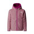 Giubbotto The North Face da bambina a tinta unita in colorazione fucsia e cipria con classico logo del brand sul petto e sul retro in contrasto di colore. Modello con ampio cappuccio, chiusura sul davanti con cerniera, comode tasche laterali, maniche lunghe e fondo con orlo dritto. Tessuto in poliestere.