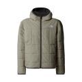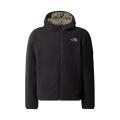 Giubbotto The North Face da bambino in colorazione salvia e nero con classico logo del brand sul petto e sul retro in contrasto di colore. Modello reversibile, con ampio cappuccio, chiusura sul davanti con cerniera, comode tasche laterali, maniche lunghe e fondo con orlo dritto. Tessuto in poliestere.