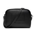 Borsa Calvin Klein da donna a tinta unita in colorazione nero con classico logo del brand sul davanti in contrasto di colore. Modello con lunga tracolla regolabile e chiusura nella parte superiore con cerniera. Materiale in Similpelle. Dimensione: 18 x 13 x 7 cm.