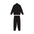 Tuta Ea7 da bambino a tinta unita in colorazione nero. Modello con felpa a collo alto, chiusura sul davanti con cerniera, logo sul petto, bande sulle maniche e fondo con orlo dritto. Pantafelpa con molla elastica in vita, comode tasche laterali e fondo con polsini alle caviglie. Tessuto in misto cotone.