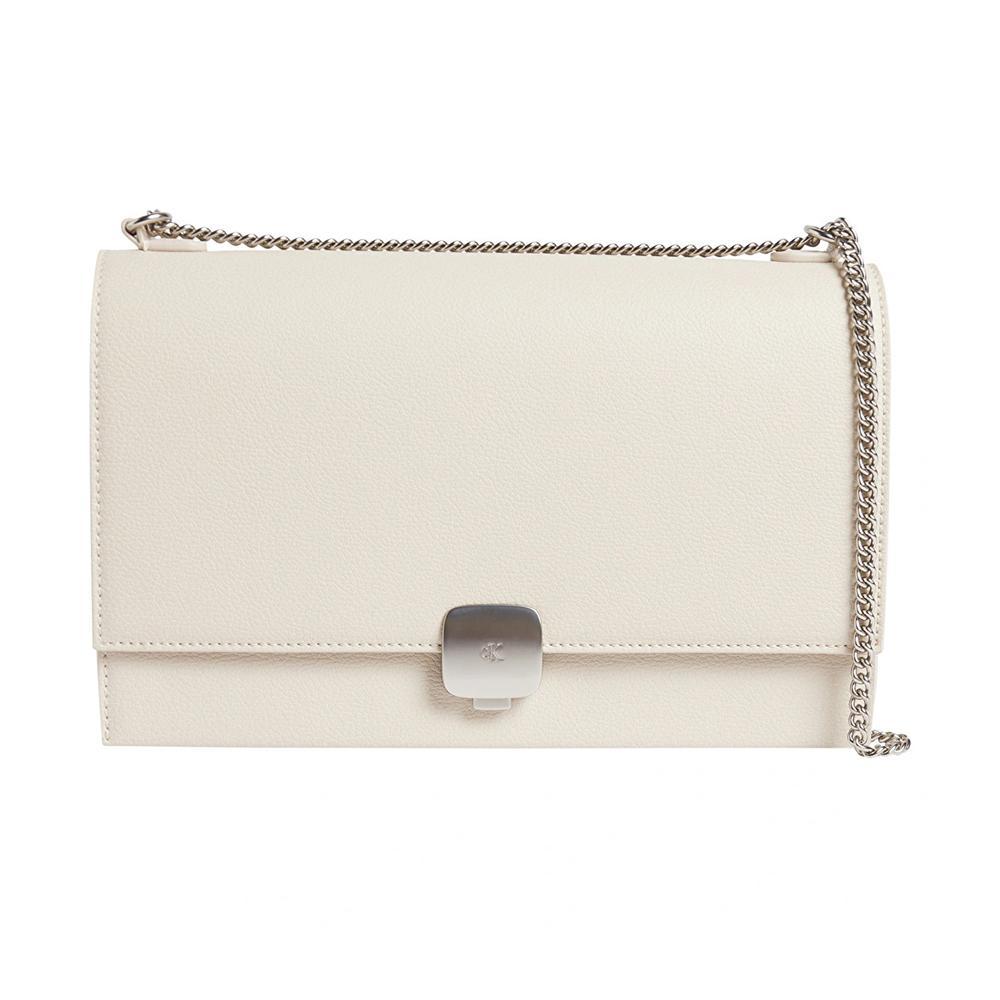 Borsa Calvin Klein da donna a tinta unita in colorazione cipria con classico logo del brand posto sulla clip sul davanti. Modello con catena metallica e ampia patta. Materiale in ecopelle. Dimensione: 17 cm x 27 cm x 9 cm.