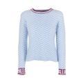 Maglia Fracomina da bambina a tinta unita in colorazione polvere con classica targhetta del brand realizzata in metallo posta in fondo con contrasto di colore. Modello girocollo, maniche lunghe con polsini, fondo con orlo dritto e molla elastica in vita.