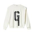 Felpa Gaelle da bambina a tinta unita in colorazione bianco con classico logo del brand sul davanti in contrasto di colore. Modello girocollo, maniche lunghe con polsini, fondo con orlo dritto e molla elastica sul fondo.