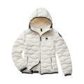 Giubbotto Blauer da donna a tinta unita in colorazione bianco trapuntato a onde orizzontali e classica toppa del brand con brillantini in contrasto di colore sulla manica. Modello con ampio cappuccio, chiusura sul davanti con cerniera, comode tasche laterali, maniche lunghe e fondo dritto. Tessuto in Nylon.