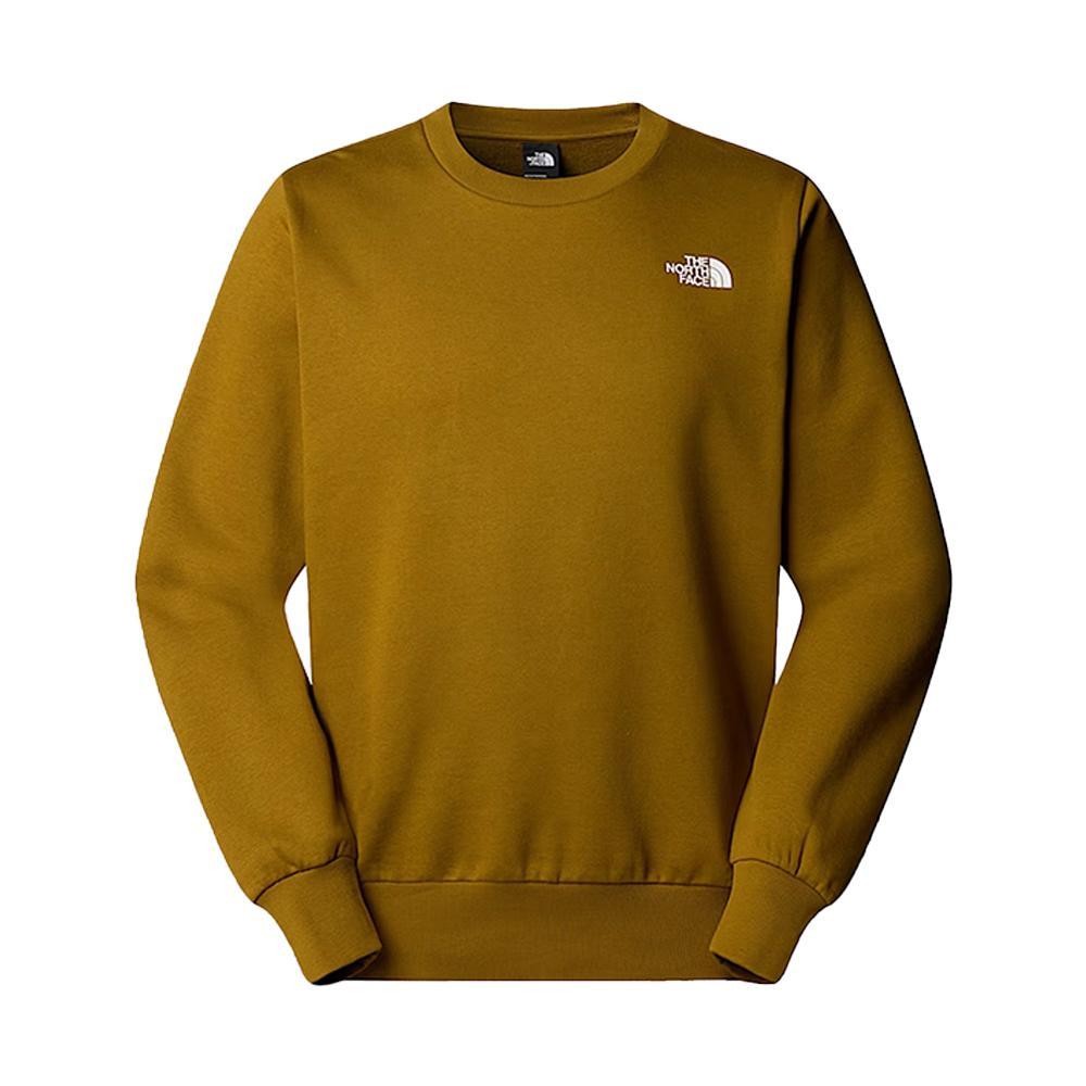 Felpa The North Face da uomo a tinta unita in colorazione oliva con classico logo del brand sul petto e sul retro in contrasto di colore. Modello girocollo, maniche lunghe con polsini, fondo con orlo dritto e molla elastica in vita. Tessuto in misto cotone.