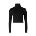 Dolcevita Calvin Klein da donna a tinta unita in colorazione nero con classico logo del brand posto lateralmente in contrasto di colore. Modello con collo alto, maniche lunghe e fondo con orlo dritto. Tessuto in misto cotone.