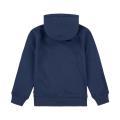 Felpa Levi's da neonato a tinta unita in colorazione blu con classico logo del brand sul petto in contrasto di colore. Modello con ampio cappuccio, maniche lunghe con polsini, chiusura sul davanti con cerniera, comode tasche laterali, fondo con orlo dritto e molla elastica in vita.