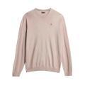 Maglia Napapijri da uomo a tinta unita in colorazione sabbia con classico logo del brand cucito sul petto in contrasto di colore. Modello girocollo, maniche lunghe con polsini, fondo con orlo dritto e molla elastica in vita. Tessuto in lana.
