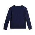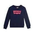 Felpa Levi's da bambina a tinta unita in colorazione blu con classica stampa del brand sul davanti in contrasto di colore. Modello girocollo, maniche lunghe con polsini, fondo con orlo dritto e molla elastica in vita. Tessuto in misto cotone.