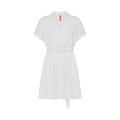 Copricostume Sun68 da donna a tinta unita in colorazione bianco con trama cucita su tutto il capo. Modello con classico colletto, maniche corte, cintura in vita e fondo con orlo dritto. Tessuto in Cotone.