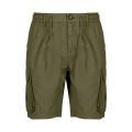 Bermuda Censured da uomo a tinta unita in colorazione militare. Modello cargo, molla elastica in vita con lacci, chiusura sul davanti con bottone e comode tasche laterali. Tessuto in misto Cotone.