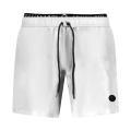 Boxer mare Trussardi da uomo a tinta unita in colorazione bianco con scritte del brand nella doppia molla elastica in contrasto di colore e toppa sulla gamba. Modello con molla elastica in vita e comode tasche laterali. Tessuto in Poliestere.