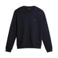 Felpa Napapijri da uomo a tinta unita in colorazione blu con classici logo del brand cucito sul petto in contrasto di colore. Modello girocollo, maniche lunghe con polsini, fondo con orlo dritto e molla elastica in vita. Tessuto in cotone.