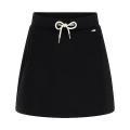 Gonna Guess da donna a tinta unita in colorazione nero con piccola targhetta del brand in metallo posta lateralmente in contrasto di colore e pattern del brand su tutto il capo. Modello con molla elastica in vita, comode tasche laterali e fondo dritto. Tessuto in misto Poliestere.