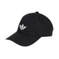 Berretto Adidas da uomo a tinta unita in colorazione nero con classico logo del brand cucito sul davanti in contrasto di colore. Modello con visiera a becco e linguetta regolabile sul retro. Tessuto in Cotone.